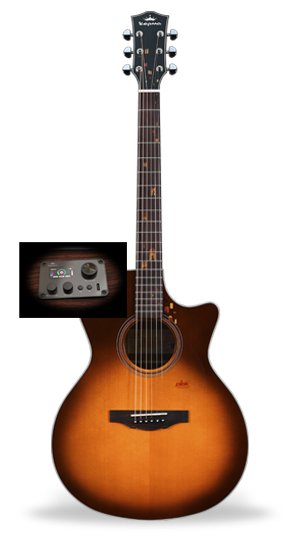 Grand Auditorium Body Style, Solid Torrefied Alaskan Sitka AA+ Spruce top, Layered African Ovangkol Back & Sides, Sunburst Finish, AcoustiFex L1 Looper, Pickup, Preamp & FX system, Gig Bag